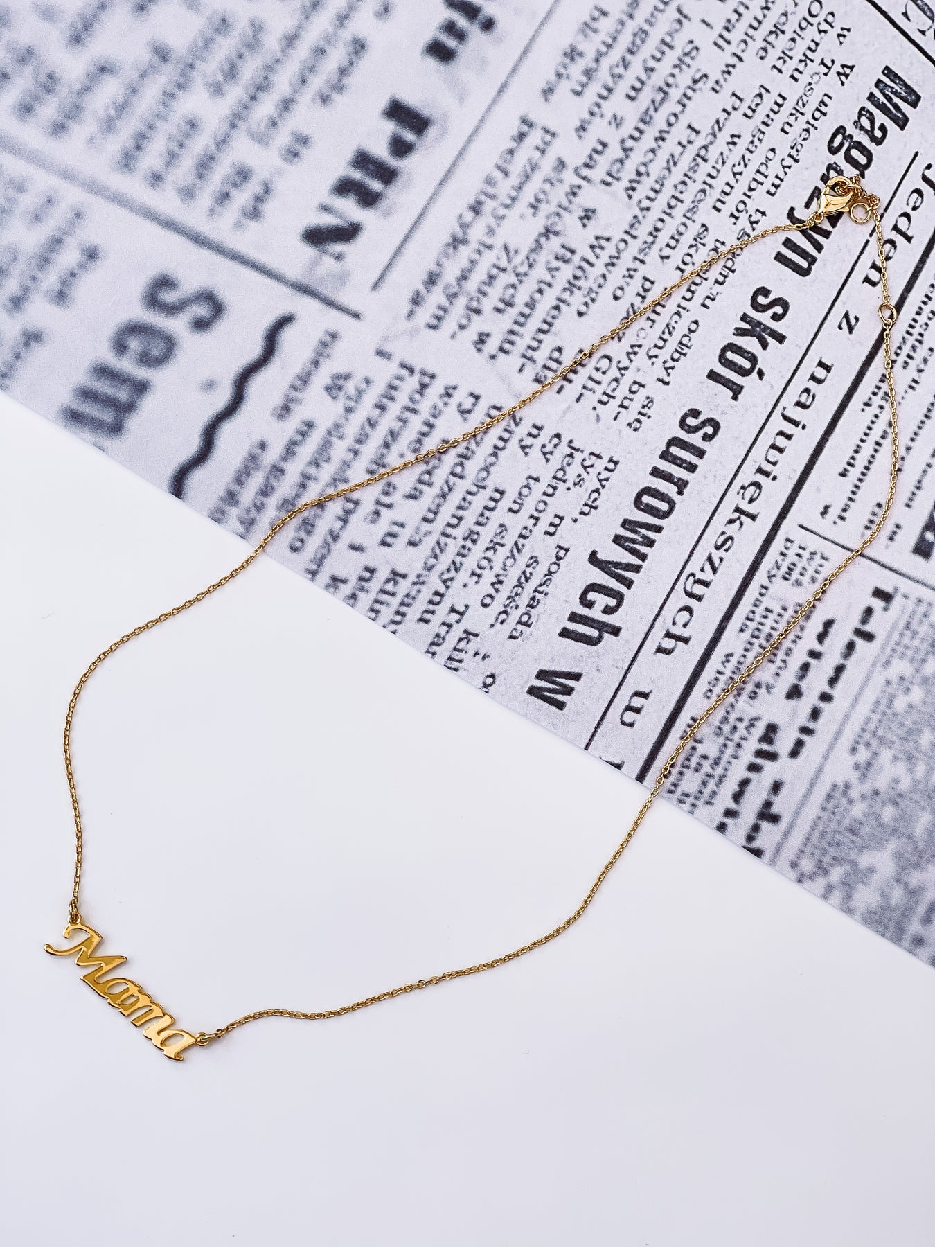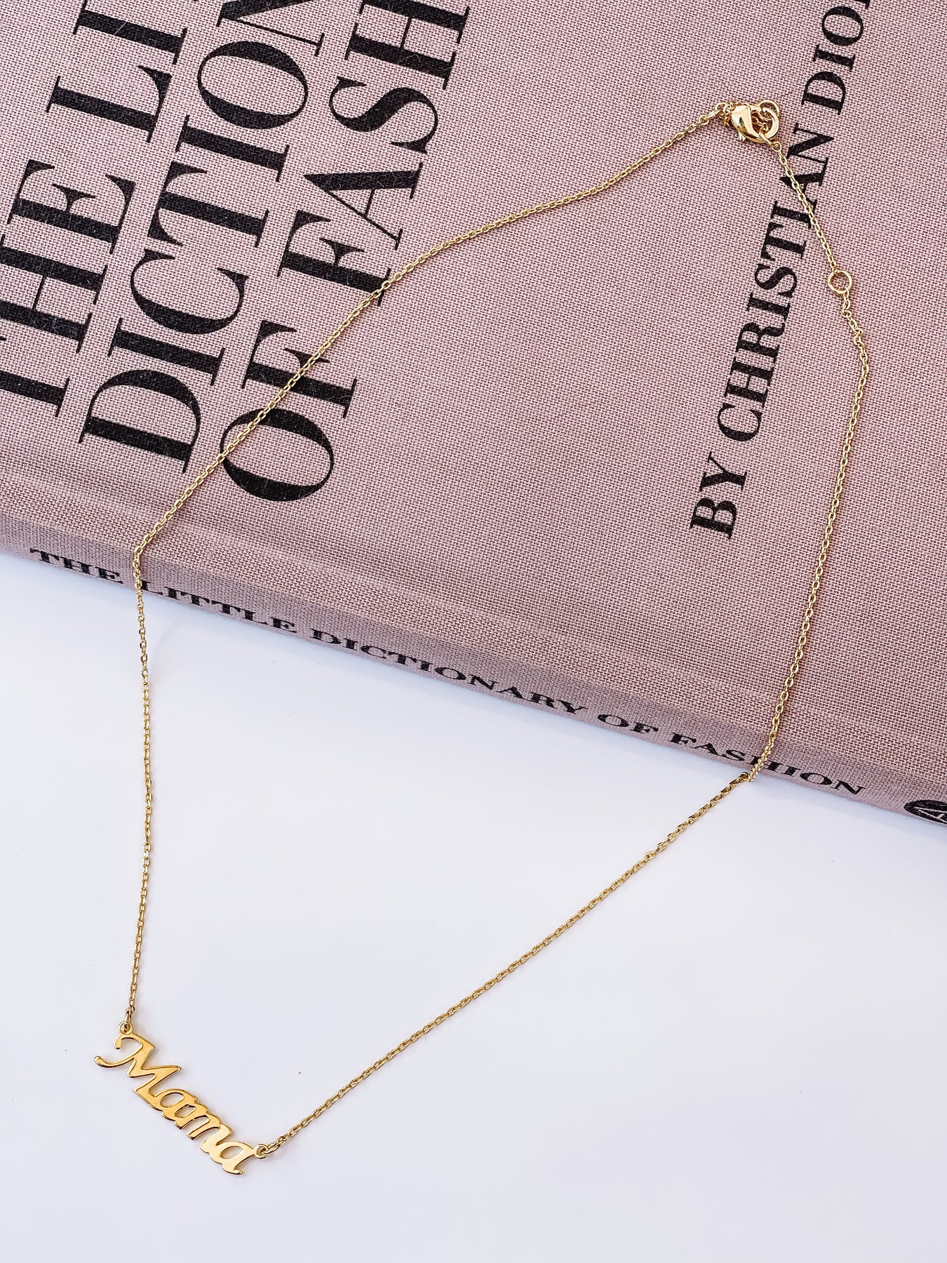 • cursive writing "mama" thin gold necklace